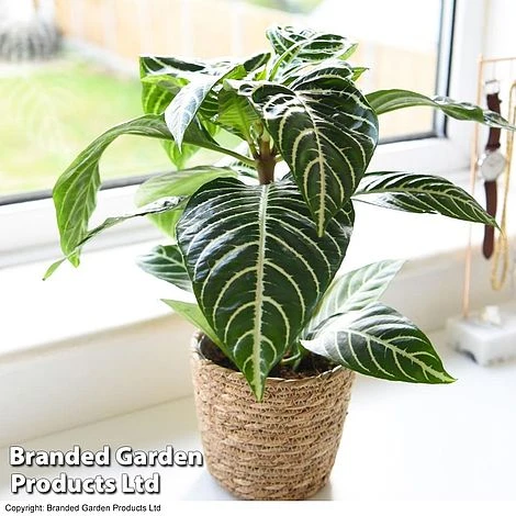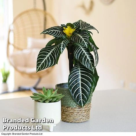 An incredibly striking houseplant, Zebra Plant boasts large, shiny emerald leaves with prominent white stripes along the veins. The exotic display may be enhanced by showy plumes of golden yellow bracts, from which tubular golden yellow flowers emerge. A jewel of the Central American rainforest, Aphelandra squarrosa is sure to draw attention in the home or the office. Height: 30-60cm (12-24in). Spread: 30cm (12in).