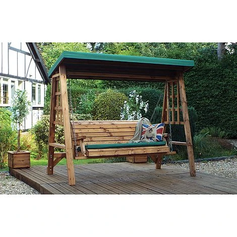 Dorset 3 Seater Swing: The Blackbrook range will spoil you for choice for high quality garden swings and arbours. All products showcase excellent craftmanship and celebrate the natural beauty of wood. The Dorset 3 Seater Swing is a perfect addition to any garden for children of all ages! It is made of Scandinavian Redwood which is a beautiful and durable wood resistant to decay and disease, and it is fully treated for your peace of mind. The Dorset boasts a canvas canopy cover in any one of three attractive colours to protect you and your loved one from the harmful UV rays. The swing’s sturdy seat accommodates three and comes with cushions that match the canopy’s colour. Garden swings can help with back pain and they provide a form of light, fun, but substantial exercise. Watch your children engage in an activity that calms their mind. Invite your loved one to gently rock your troubles away together and exercise your knees. No matter the moment, the Dorset 3 Seater Swing is sure to enhance your outdoor space with its inviting design and its rustic charm of natural wood.Please note that uses the White Glove bespoke delivery and assembly service.