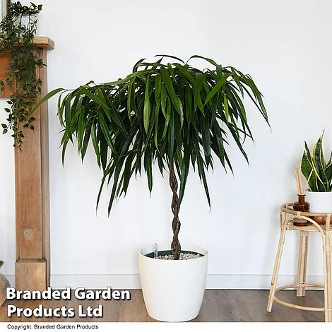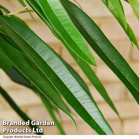 Ficus binnendijkii ‘Alii’ is an unusual Ficus bearing long leaves that taper at the ends creating a graceful silhouette. An attractive braided stem supports a canopy of slender foliage making an impressive, upright focal point. This variety is much less prone to dropping its leaves than other Ficus and is particularly good at removing toxins and improving air quality within your home. Height: 300cm (118″). Spread: 150cm (59″).