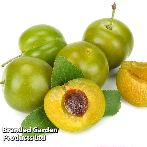 This traditional French gage is similar to Old Green Gage, ripening to the gorgeous green-golden hue which is typical of its French ancestors. Gage ‘Reine Claude Dore’ is considered to have the finest flavour of all gages but compared to other gages is a vigorous tree and relatively easy to grow. Heavier cropping than most gages, fruit size and quality benefits from thinning in June. ‘Reine Claude Doree’ has a distinguished history and is probably the oldest of French Green Gages, predating the introduction of the greengage into England by Sir William Gage.