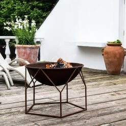Outdoor Cast Iron Firebowl On Stand In Rust Iron H45Cm W56Cm