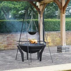 Outdoor Colorado Metal Cooking Stand With Chain In Black H136Cm W96Cm