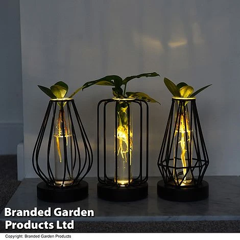 If you’re looking for a neat, houseplant display with the minimum of fuss or mess – go hydroponic! This soil-less arrangement is a clean and tidy way of displaying plants on a tabletop or shelf that is easy to look after and less attractive to pests than potted plants. This stylish display showcases varied foliage shapes and textures and comes with an integral LED light for additional night time interest.