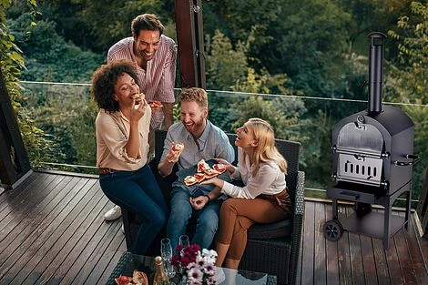 Capable of reaching up to 400ºC, far hotter than most household ovens, the directional heating from the fire combines with the high thermal mass of the provided pizza stone – which ensures the classic crispy crust and melty, gooey cheese that instantly conjures iconic Italien imagery in your head when you smell it cooking!