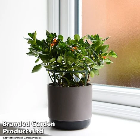 This trailing subshrub from Brazil has earned some delightful nicknames such as Clog Plant and Goldfish Plant due to the unusual shape of its waxy flowers. Nematanthus gregarius bears long, trailing stems clothed in small, fleshy, dark green, glossy leaves. Throughout summer, clusters of tubular orange flowers are produced which resemble pouting goldfish darting amongst a backdrop of deep green foliage! Grow it as a hanging plant to highlight its cascading foliage studded with vivid flowers. RHS Award of Garden Merit. Height: 20cm (8in). Width: 50cm (20in).