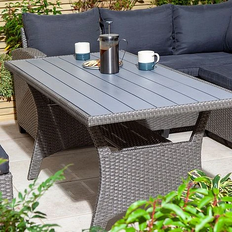 The Albany Deluxe Corner set is a stunning garden dining solution, perfect for sharing with family and friends. This is perfect for the customer who does not want to compromise on on comfort, quality and design. The large, robust table allows for many dishes to be served on and you can enjoy drinks, finger food or even Sunday roast amid your garden. The table comes with an integrated shelf for storing various items out of the way when food is served. The stools come with convenient holes which will help carrying them around. The sofa also has storage for cushions built in.