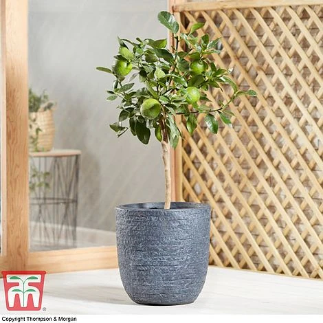 Lime trees are capable of surviving brief periods below 0C, but are best grown in large containers and moved indoors to a bright frost free position from autumn to spring. This tree is self fertile and will not need a pollination companion. Propagated onto ‘PS’ rootstock and supplied as a large specimen bush (often in fruit) in a 5 litre pot. Height: 250cm (78″). Spread: 150cm (59″).